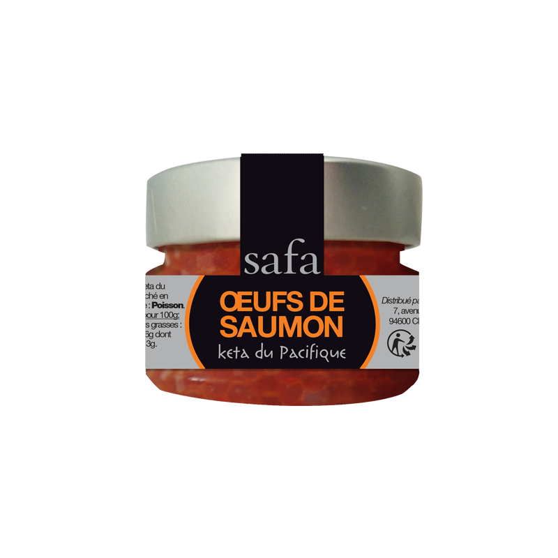 Ingrédients: OEufs de SAUMON du Pacifique (Oncorhynchus Kéta) 97%, sel.